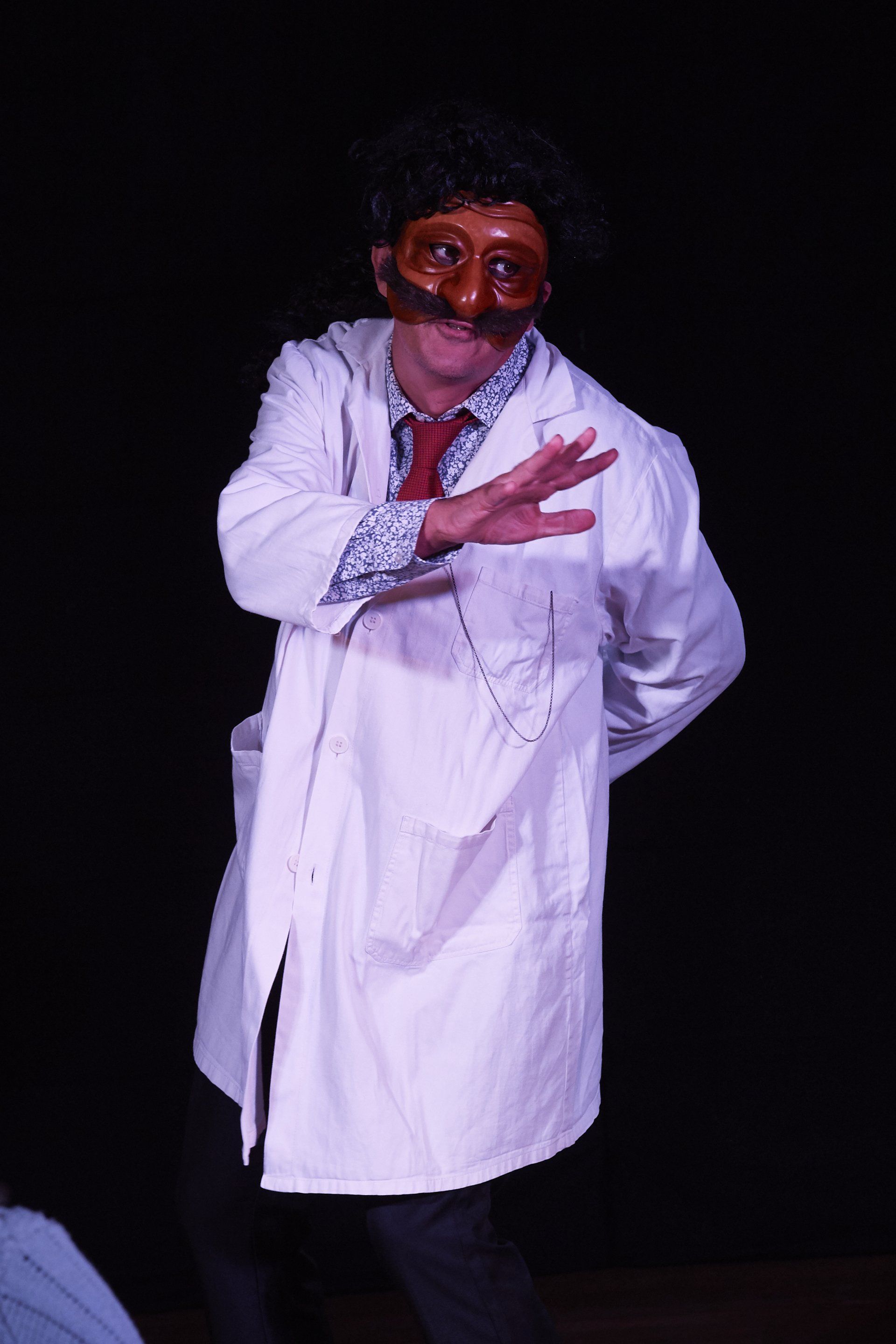 Seul en scène, Christophe endosse trois masques / trois personnages se poursuivant en une série d’épisodes au rythme effréné, et leurs tribulations ne sont pas dénuées d’effets comiques.